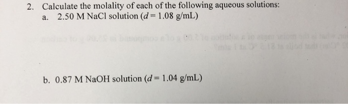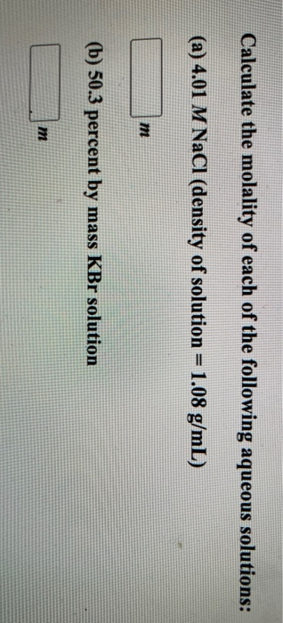 Oneclass Calculate The Molality Of Each Of The Following Aqueous Solutions A 1 90 M Nacl Solution
